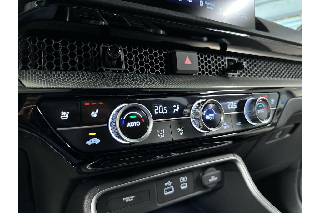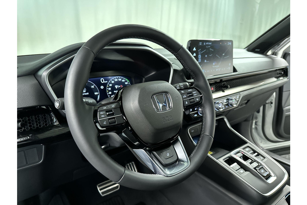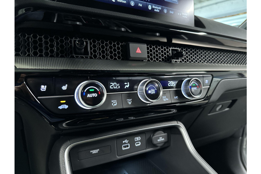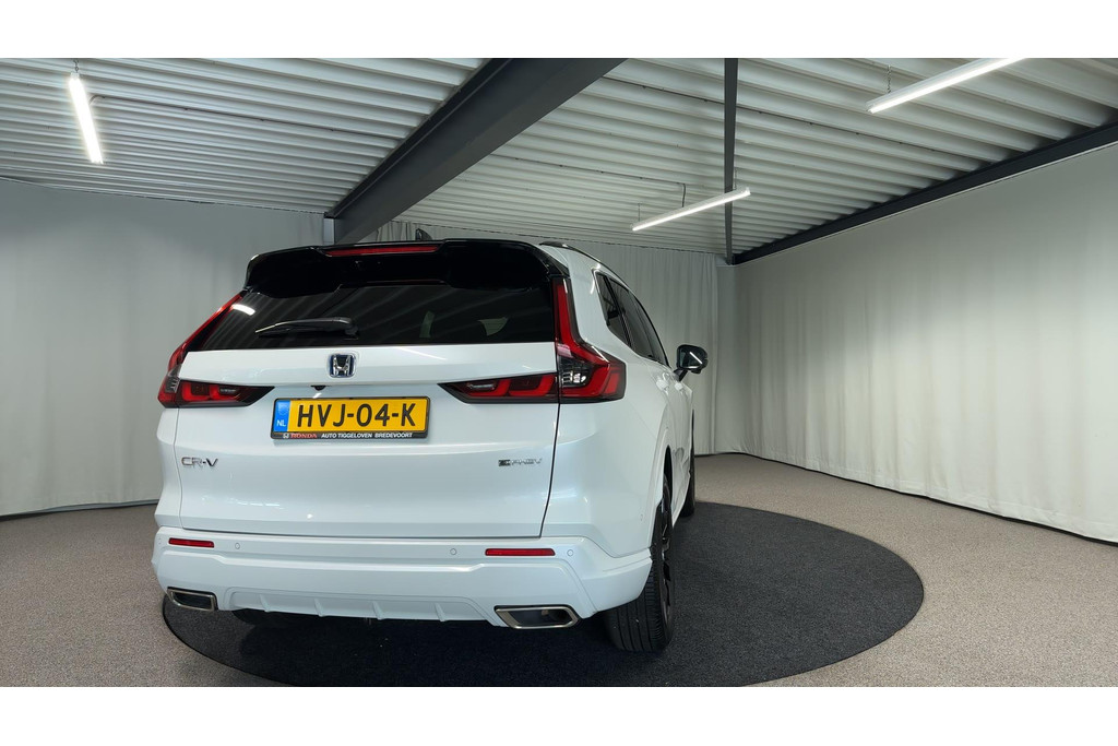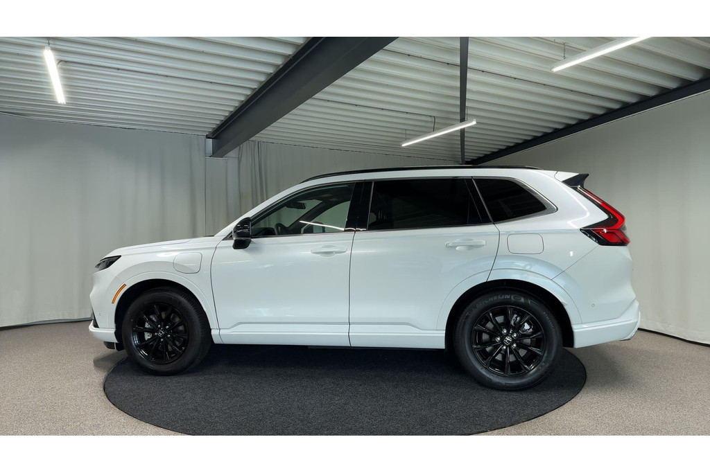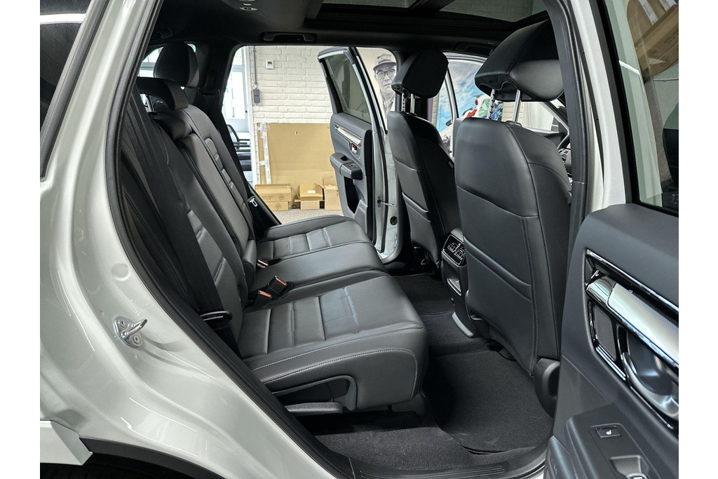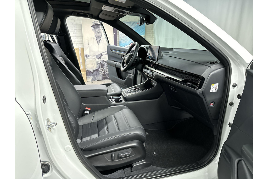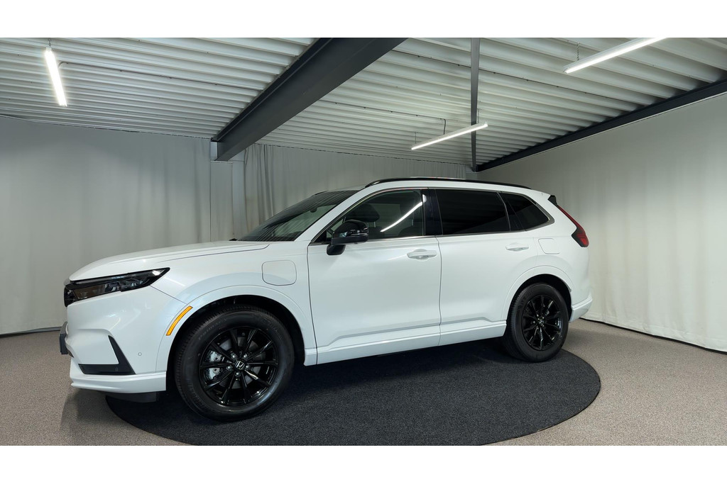 Wereldwijd worden de Japanse automerken geprezen om hun baanbrekende ontwerpen en het hoge kwaliteitsniveau van hun auto's. Dat is ook te merken aan deze Honda CR-V. Deze gloednieuwe auto is per direct uit onze voorraad leverbaar. Elektrisch rijden of toch benzine? Voor allebei is iets te zeggen. Daarom biedt de hybride motor van deze Honda CR-V de keus. U wilt comfort? Die is er, met het lederen interieur. U wilt gemak? Kijk dan even naar de elektrisch bedienbare achterklep. Zit u goed? De stoelen zijn eenvoudig instelbaar dankzij de elektrische bediening met geheugen. Alles aan deze auto is ontworpen voor comfort, tot aan de stoelverwarming, verwarmbare achterbank, en verwarmbaar stuur. Zicht, licht en toch dicht! Een geweldige rijervaring met het glazen panoramadak. In deze Honda profiteert u onder andere ook van: 18 inch lichtmetalen velgen, LED-koplampen, adaptief dempingsysteem, trailer assistent, dakspoiler en extra getint glas.