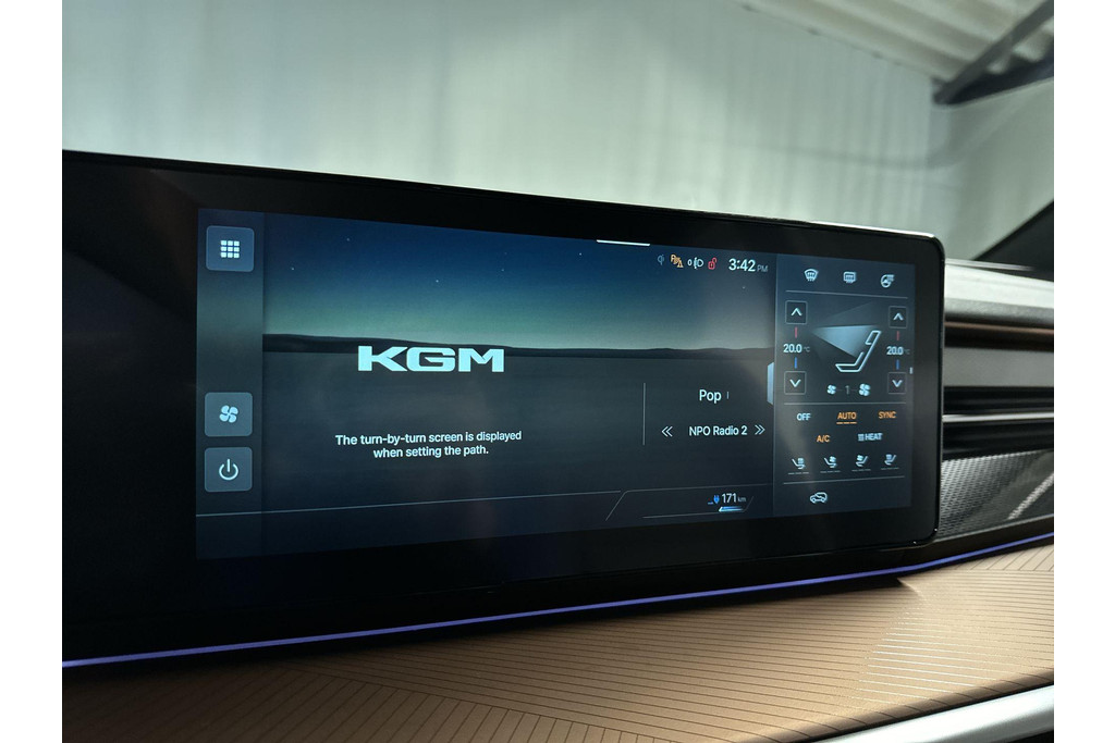 Kinderfietsje niet gezien bij het inparkeren? Dat gebeurt u nooit meer. Daar zorgt de achteruitrijcamera wel voor! Adaptive cruise control is een comfortabele en veilige optie. Het systeem reguleert de snelheid en houdt automatisch afstand tot uw voorligger. Is uw smartphone geschikt voor snoerloos opladen? Dan zorgt de draadloze oplaadmogelijkheid voor telefoons weer voor een volle accu zonder snoeren en stekkers. Electronic climate control verwarmt of koelt het interieur met een druk op de knop. Het luxeniveau in deze KGM is niet alleen gericht op comfort, maar ook op uw veiligheid. Tal van sensoren helpen u om de omgeving in de gaten te houden. De automatisch inschakelbare verlichting zorgt dat automatisch de verlichting wordt ingeschakeld als het donker wordt, wat bijvoorbeeld in tunnels erg handig is. En de regensensor zet de ruitenwissers aan zonder dat u eraan hoeft te denken. Extra opties op deze auto zijn: navigatiesysteem, keyless entry en bagage afdekhoes.