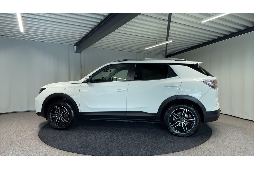 Geavanceerde technologie verpakt in aantrekkelijk design. Met deze SsangYong Korando E-Motion rijdt u elektrisch in stijl. Ervaar de kracht en stilte van de elektromotor tijdens het rijden. Ook een fijne dosis klasse is bijgeleverd, met het lederen interieur. Comfort en een gevoel van luxe: dat geeft de heerlijke stoelverwarming. Koude handen? Da's voorbij met het verwarmd stuurwiel. Pak aan! Bij de zeer complete uitrusting van deze auto behoren ook 17 inch lichtmetalen velgen, LED koplampen, extra getint glas en in delen neerklapbare achterbank.