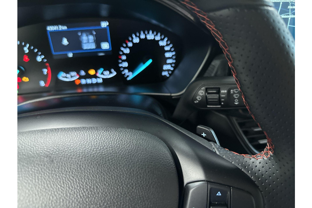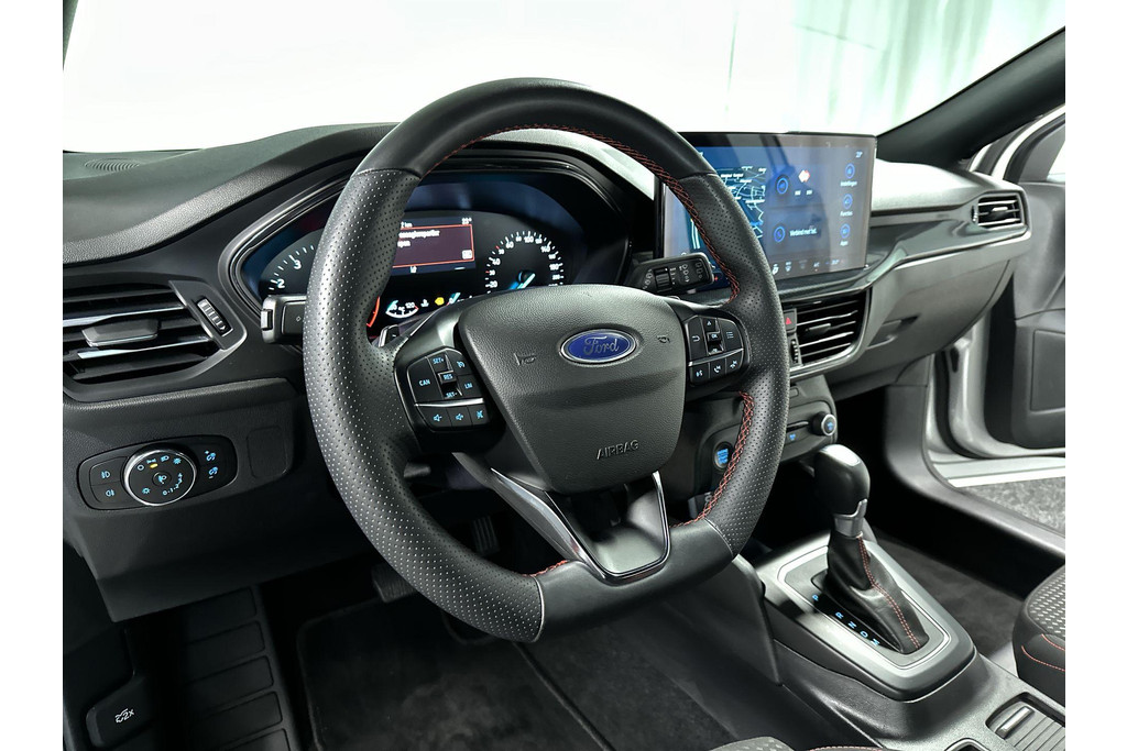 Met zijn geweldige prestaties en dynamische uiterlijk laat deze sportieve eyecatcher het hart van veel autoliefhebbers sneller kloppen. We hebben het hier over een Ford Focus Wagon. In deze auto vindt u een benzinemotor en een automatische transmissie. In deze uitvoering is de Focus Wagon voorzien van mooie, maar ook functionele sportstoelen. Ook 17 inch lichtmetalen velgen, Full LED koplampen, sportonderstel, geluidsisolerende ramen, in delen neerklapbare achterbank en LED-achterlichten horen tot de voorzieningen op deze auto.