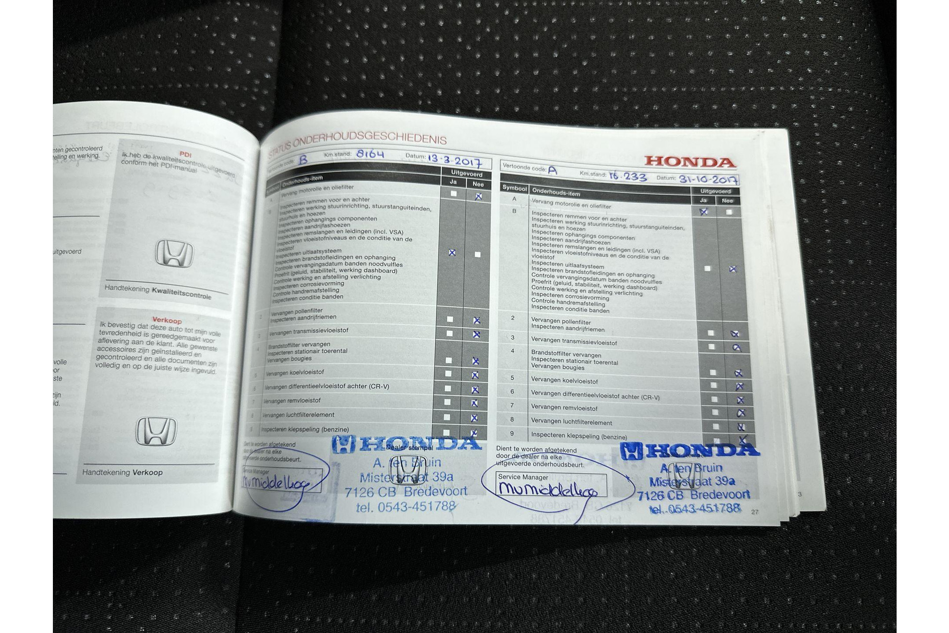 - Onderhoudsboekje (fysiek)