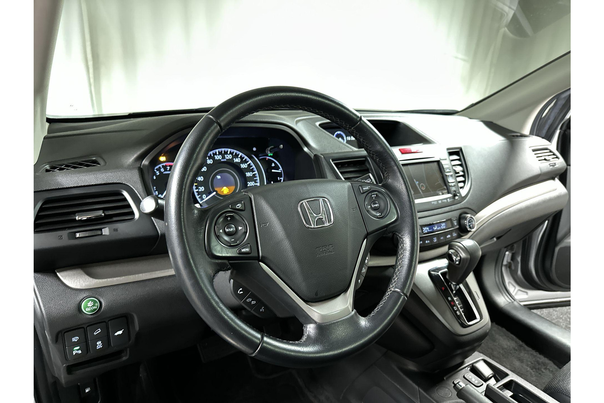 Wat een gemak, die achteruitrijcamera. Alles in beeld zonder capriolen. Geen betere plek om naar goede muziek te luisteren dan in de auto. Daarom treft u hier het high performance audiosysteem aan! Je weet altijd waar je moet zijn, dankzij het navigatiesysteem met harde schijf. Of het buiten nu warm is of koud, dankzij automatische airconditioning is het binnen altijd behaaglijk. Het geluidssyteem in deze Honda CR-V is regelbaar met behulp van de audiobediening op het stuur. Deze Honda is voorzien van DAB ontvangst, regensensor, cruise control, keyless entry, automatisch dimmende binnenspiegel en lederen stuur en versnellingspook.