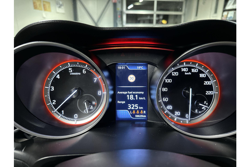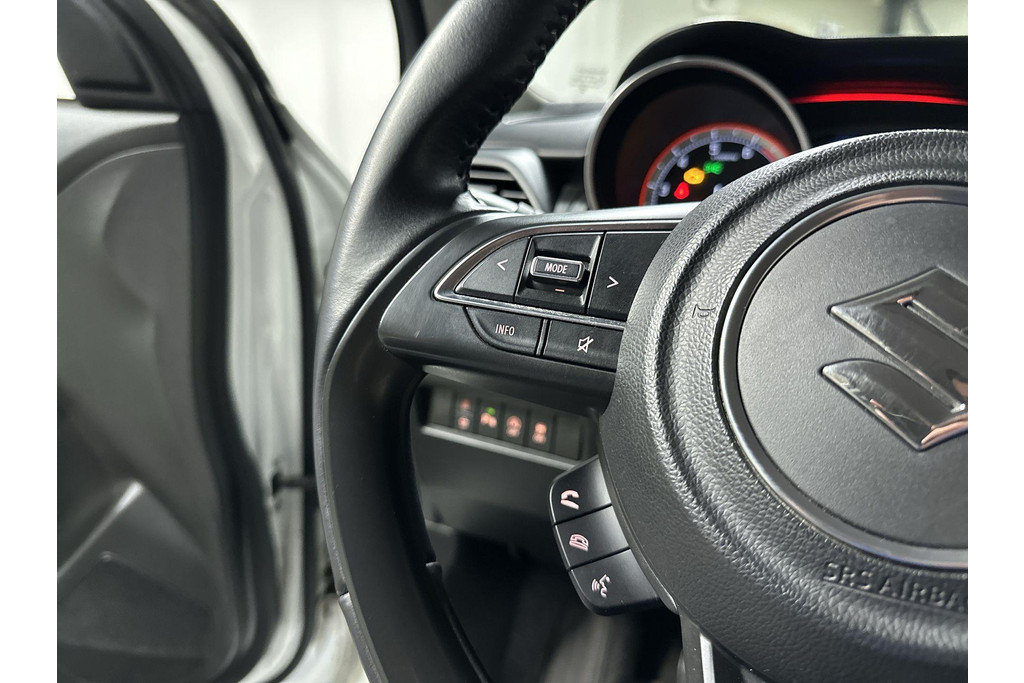 Soepel inparkeren in de krapste parkeervakken. De achteruitrijcamera maakt het mogelijk. Adaptive cruise control is een comfortabele en veilige optie. Het systeem reguleert de snelheid en houdt automatisch afstand tot uw voorligger. Met het full map navigatiesysteem kiest u de snelste route naar uw eindbestemming. Op een drukke weg heeft u soms ogen in uw achterhoofd nodig. De sensoren aan de achterzijde nemen die functie over en geven een achteropkomend verkeer waarschuwing als een achterligger te dicht op u zit. Automatische airconditioning verwarmt of koelt het interieur met een druk op de knop. U bent in deze Suzuki ook voorzien van DAB ontvangst, keyless entry, lederen stuur, bagage afdekhoes en boordcomputer.
