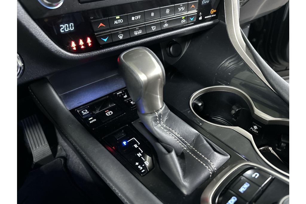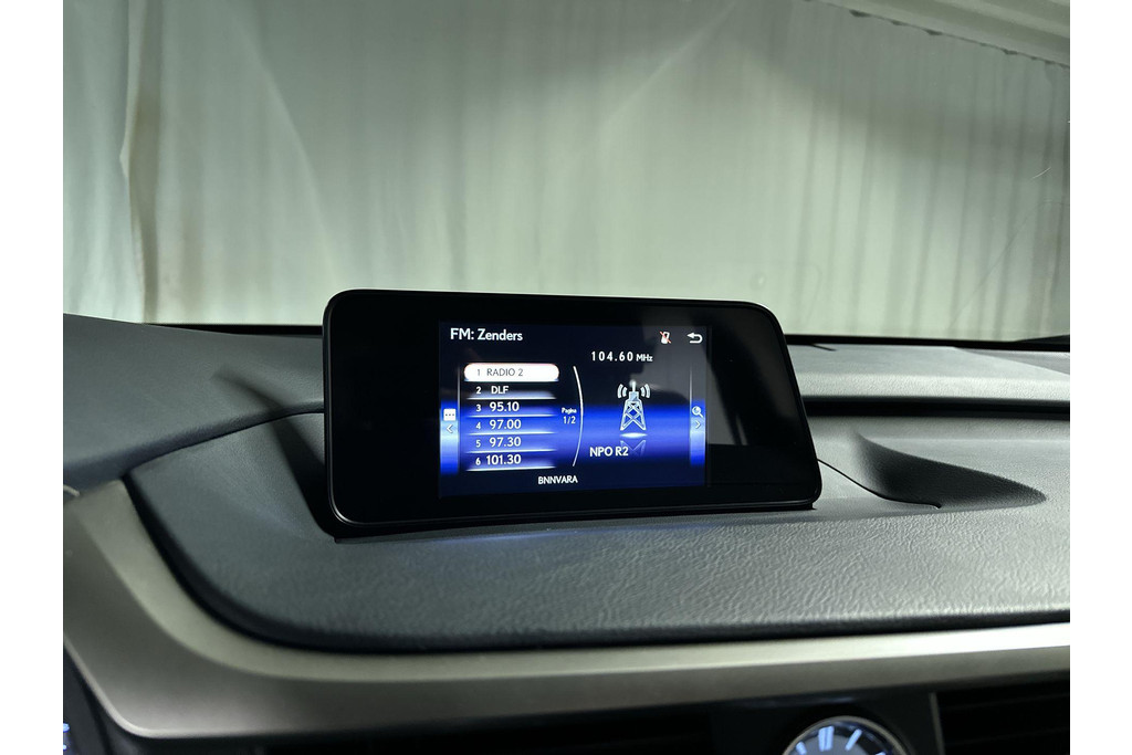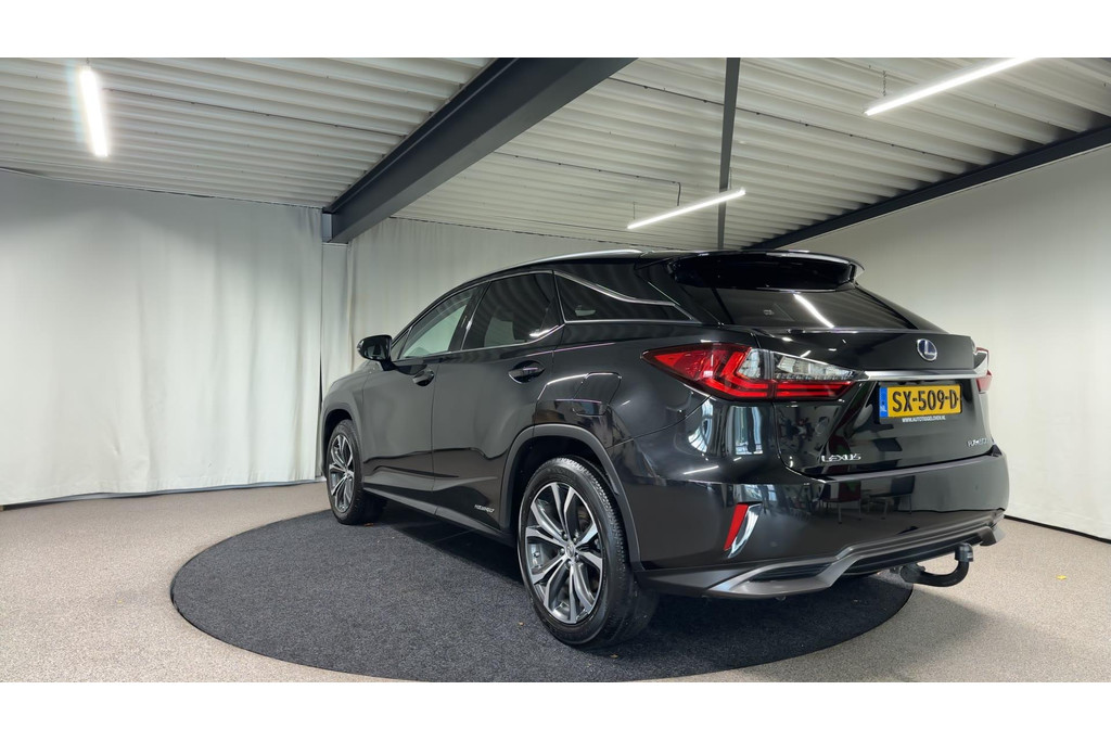 Ontspannen en zorgeloos autorijden, dat doet u met deze Lexus RX. Elektrisch rijden: zuinig, goedkoop en schoon. Maar soms net wat beperkt als het gaat om afstand. Daarom heeft deze hybride Lexus RX zowel een verbrandingsmotor als een elektromotor. Als dat geen perfecte combi is! Met zijn lederen bekleding is deze Lexus comfortabel en stijlvol. Doe maar luxe! Neem plaats in de verwarmbare voorstoelen en voel de weldaad in koude dagen. Het interieur baadt in daglicht dankzij het elektrisch bediende glazen panoramadak. De achterklep opent automatisch met een druk op de knop. Handig als u met volle handen staat. Aan een fijn opwarmertje in de kille dagen is gedacht, in de vorm van een verwarmd stuurwiel. Verder is de Lexus uitgerust met: 20 inch lichtmetalen velgen, LED koplampen, extra getint glas, in delen neerklapbare achterbank, LED-achterlichten en verstelbare lendensteunen.