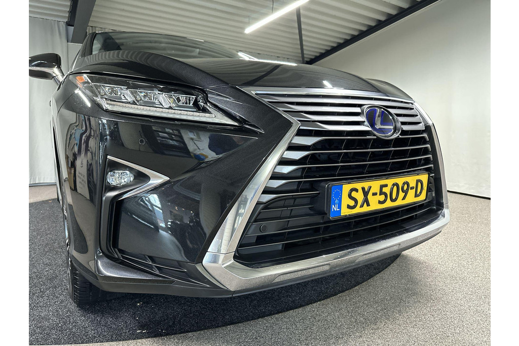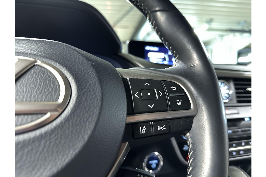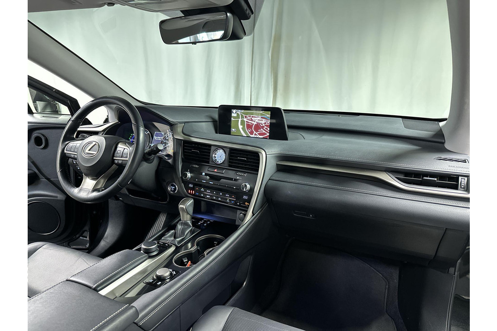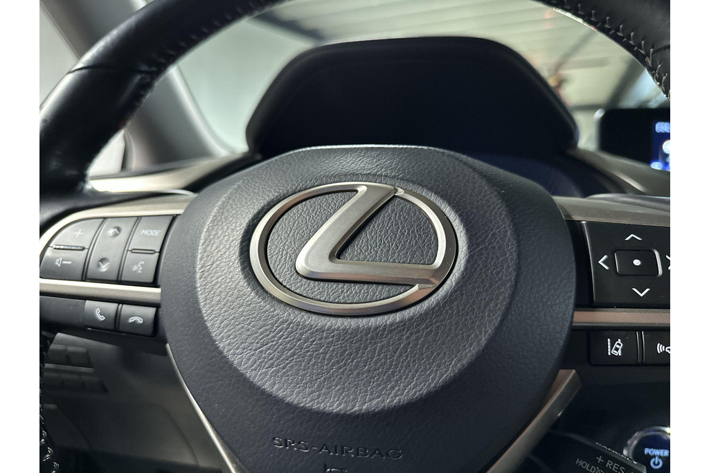 Ontspannen en zorgeloos autorijden, dat doet u met deze Lexus RX. Elektrisch rijden: zuinig, goedkoop en schoon. Maar soms net wat beperkt als het gaat om afstand. Daarom heeft deze hybride Lexus RX zowel een verbrandingsmotor als een elektromotor. Als dat geen perfecte combi is! Met zijn lederen bekleding is deze Lexus comfortabel en stijlvol. Doe maar luxe! Neem plaats in de verwarmbare voorstoelen en voel de weldaad in koude dagen. Het interieur baadt in daglicht dankzij het elektrisch bediende glazen panoramadak. De achterklep opent automatisch met een druk op de knop. Handig als u met volle handen staat. Aan een fijn opwarmertje in de kille dagen is gedacht, in de vorm van een verwarmd stuurwiel. Verder is de Lexus uitgerust met: 20 inch lichtmetalen velgen, LED koplampen, extra getint glas, in delen neerklapbare achterbank, LED-achterlichten en verstelbare lendensteunen.