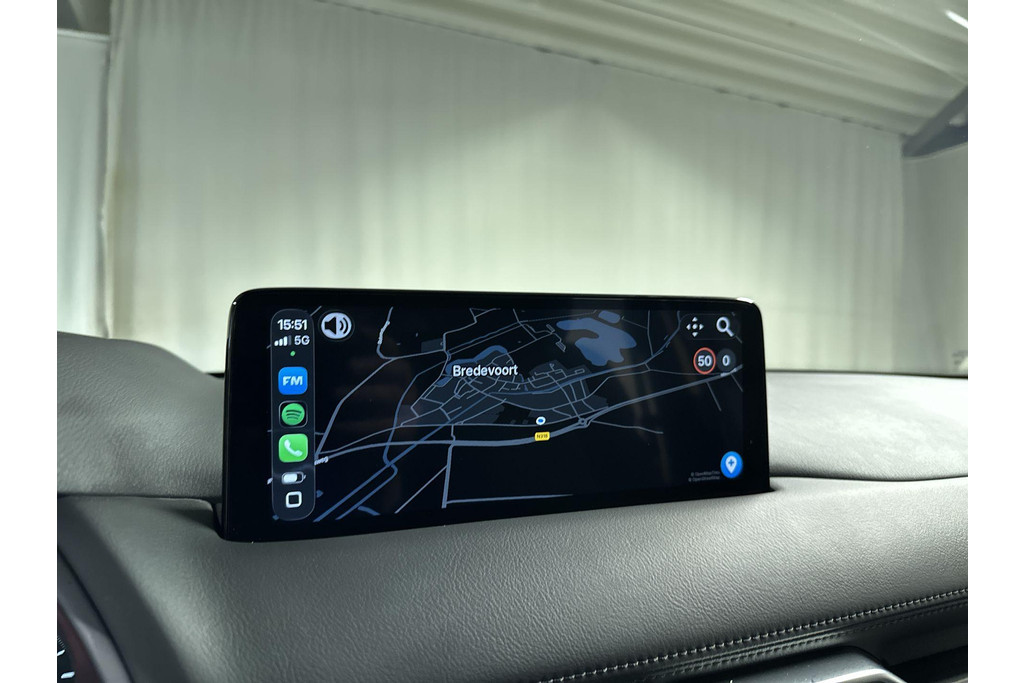 Door het combineren van beelden van vier camera's, biedt de 360 graden camera een naadloos en gedetailleerd beeld van de hele omgeving rondom deze auto. Met adaptive cruise control houdt de auto zelfstandig afstand tot uw voorligger. Een veiligheidsverhogende optie waarmee u comfortabel onderweg bent. Kop aan kont langzaam rijden: dan is afstand houden soms lastig. De file assistent helpt en zorgt automatisch voor veilige ruimte tot de voorligger. Ook als die tot stilstand komt. Connected Services voegt nog meer comfort en veiligheid toe aan deze auto. Elk genre muziek komt tot z'n recht. Het high performance audiosysteem is perfect in te regelen op uw smaak! De Mazda is standaard voorzien van: dashboard met spraakbediening, full map navigatiesysteem, achteropkomend verkeer waarschuwing, electronic climate control, draadloos opladen en DAB ontvangst.