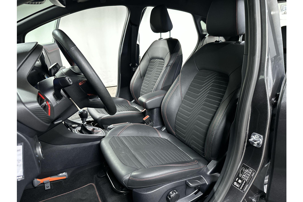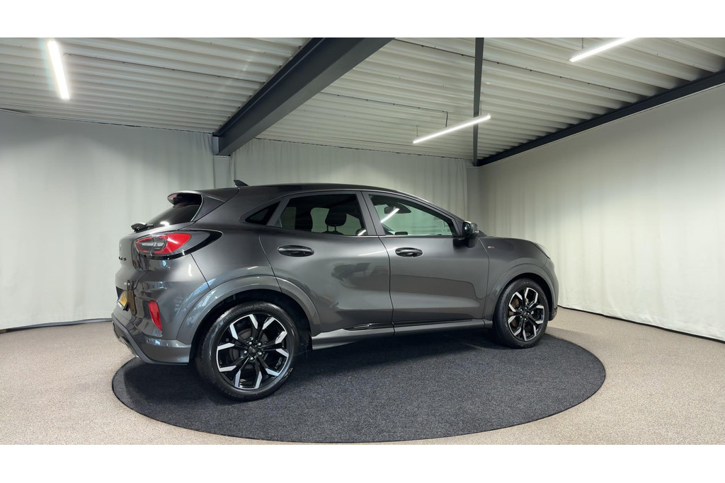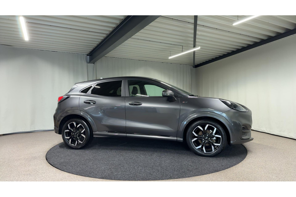 Alle technologie in de Ford Puma is er op gericht om uw rit veilig en gemakkelijk te laten verlopen. Dit mooie exemplaar uit 2022 heeft 41754 kilometer op de teller staan. De aandrijving komt voor rekening van een benzinemotor en een handgeschakelde zesversnellingsbak. Op koude en donkere dagen zijn de verwarmbare voorstoelen een uitkomst. De sportstoelen geven u veel zitsteun. Bij deze Ford Puma is aan alles gedacht, tot en met een verwarmd stuurwiel aan toe. Tot de uitrusting behoren ook 18 inch lichtmetalen velgen, LED koplampen, sportonderstel, halflederen bekleding, donker getint glas achter en in delen neerklapbare achterbank.