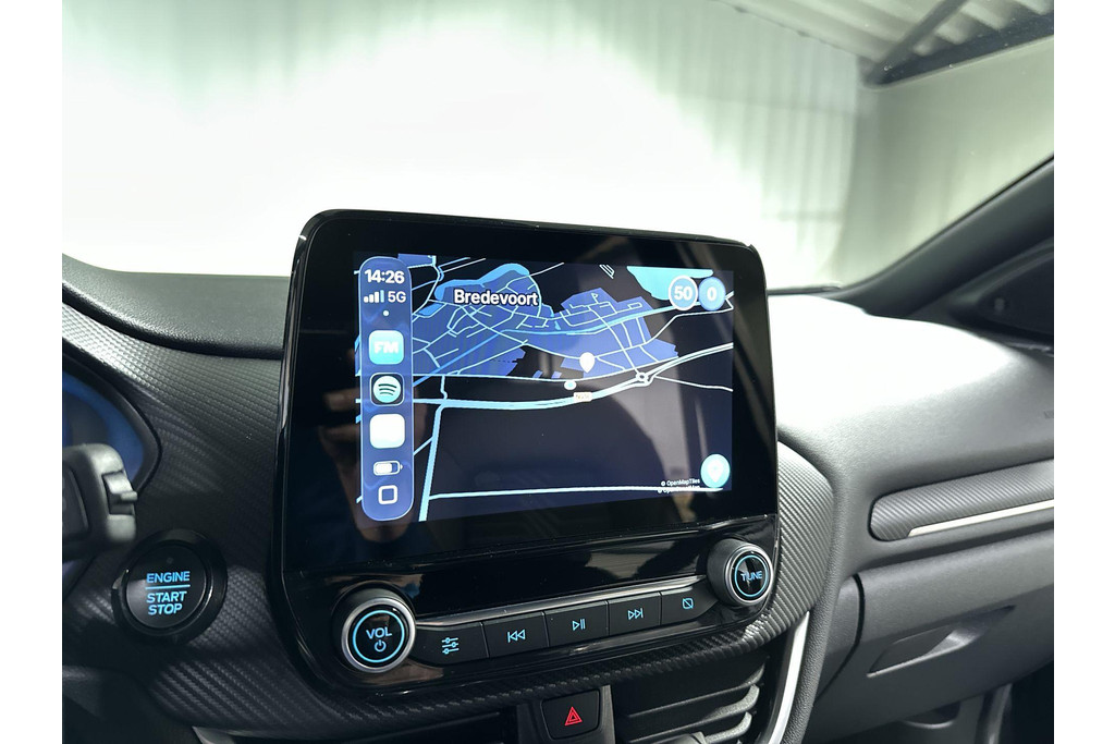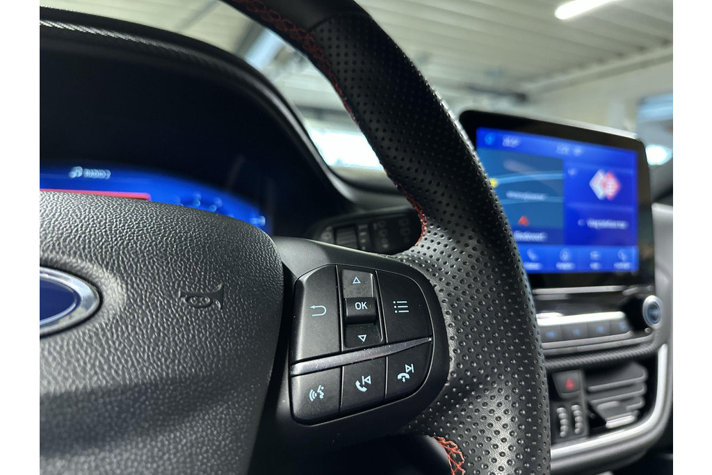Over het digitale dashboard is goed nagedacht. Alle belangrijke functies binnen en buiten in één oogopslag. Een vergeten muurtje, een verborgen paaltje? Dat gebeurt niet meer, dankzij de achteruitrijcamera. Spraakbediening verhoogt de veiligheid en het gebruiksgemak. De auto luistert naar uw instructies en volgt ze op. Functies activeren en storingen opsporen? Bij deze auto gaat het eenvoudig via uw smartphone. Overal en altijd. Het high performance audiosysteem is volledig afgestemd op de akoestiek van de auto; genieten dus! Deze Ford is voorzien van full map navigatiesysteem, automatische airconditioning, DAB ontvangst, regensensor, cruise control en automatisch dimmende binnenspiegel.