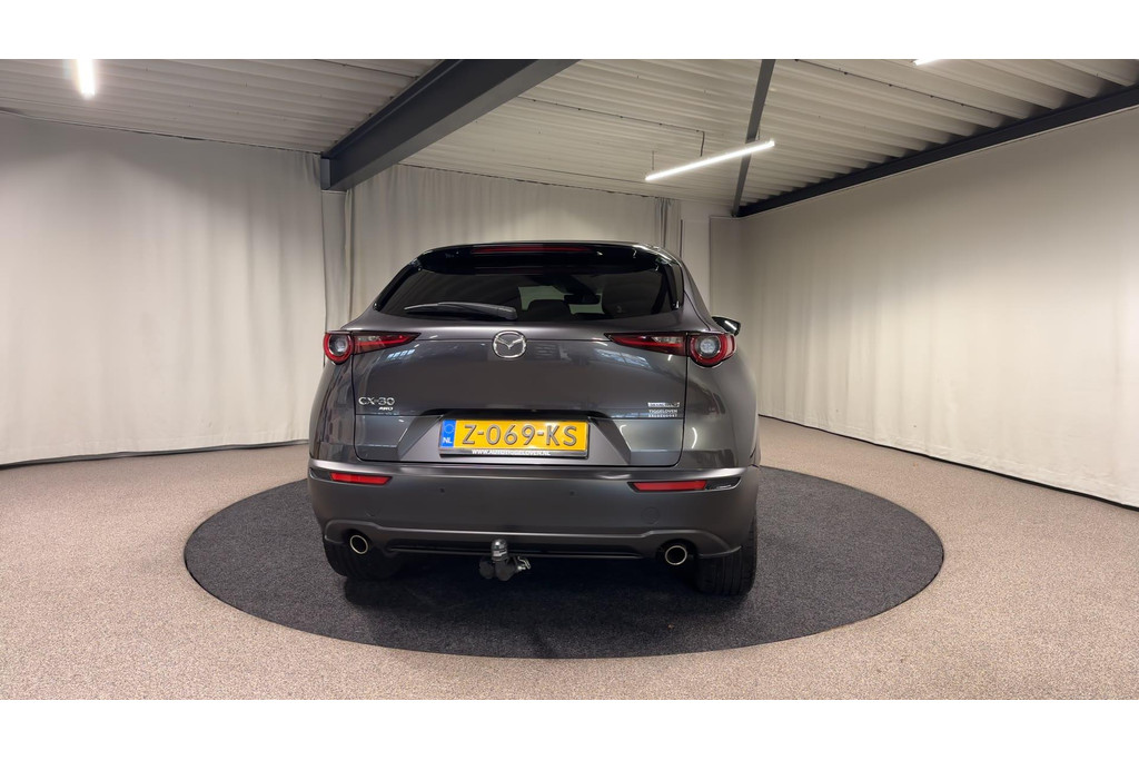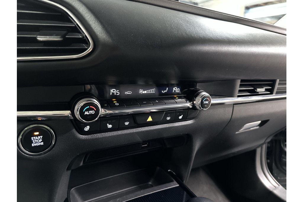 Natuurlijk, dit is een innovatieve auto met zijn hybridetechniek. Maar het is bovendien ook een auto die is gebouwd voor jarenlang rijcomfort. Deze Mazda CX-30 is voorzien van een hybride motor en gebruikt dus zowel brandstof als elektriciteit. Dat betekent zuinige kilometers en toch maximale prestaties. De leren bekleding maakt het interieur helemaal af! De verwarmbare voorstoelen zijn een heerlijke extra optie, waarmee u uzelf en uw bijrijder een groot plezier doet. De elektrisch bedienbare achterklep opent met een druk op de knop. Als het buiten koud wordt, voelt zo'n verwarmd stuurwiel heerlijk aan. Ook 18 inch lichtmetalen velgen, LED koplampen, dakspoiler, elektrisch inklapbare buitenspiegels, extra getint glas en in delen neerklapbare achterbank zijn aan boord.