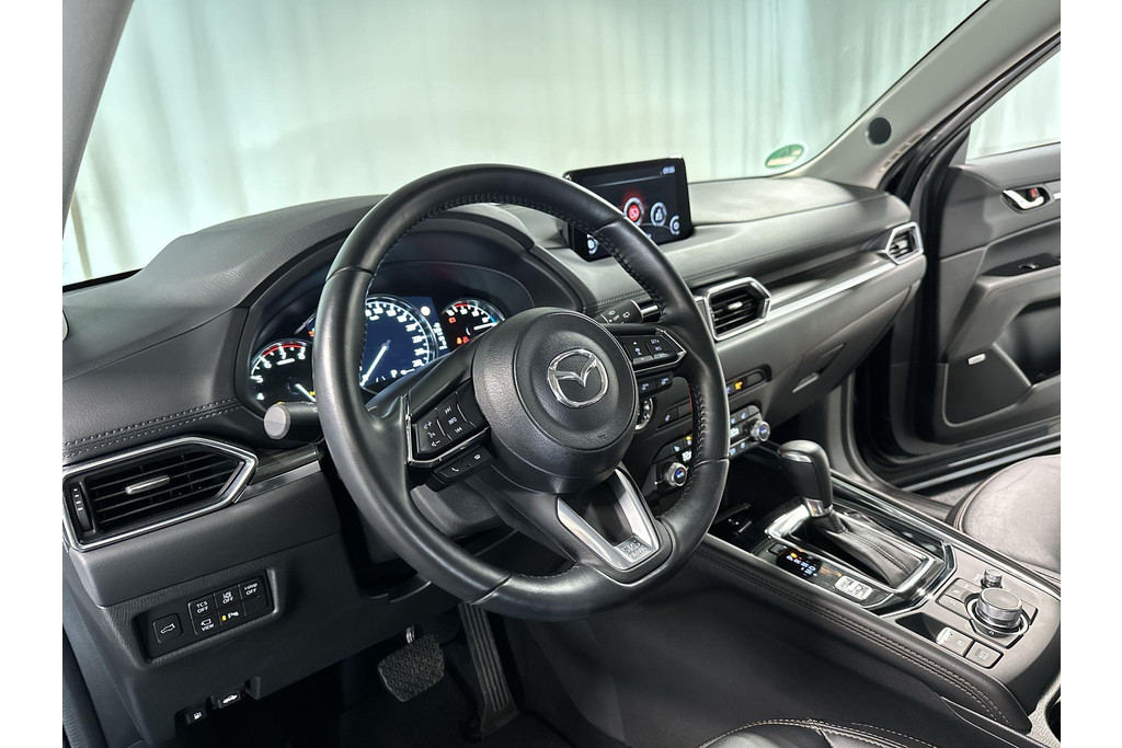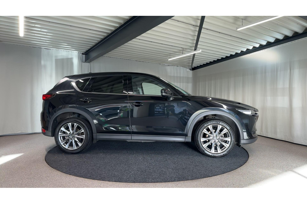 Deze Mazda CX-5 staat garant voor vele veilige en comfortabele kilometers. Deze auto is bijna nieuw, ondanks dat hij uit 2020 komt; hij heeft slechts 29946 kilometer afgelegd. Met zijn benzinemotor en automatische transmissie is dit een prima auto voor nog vele kilometers. Gemakkelijk in- en uitladen? Geen enkel probleem met de elektrisch bedienbare achterklep. En ook het stijlvolle comfort is meegeleverd dankzij het lederen interieur. Rijcomfort wordt naar een hoger niveau getild in deze auto, met inbegrip van stoelverwarming, een verwarmbare achterbank en een verwarmbaar stuur. Bij de zeer complete uitrusting van deze auto behoren ook 19 inch lichtmetalen velgen, LED koplampen, dakspoiler, extra getint glas, in delen neerklapbare achterbank en LED-achterlichten.