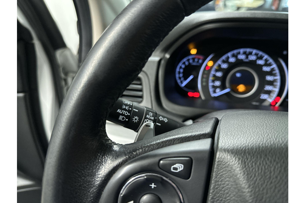 Bij het inparkeren laat de achteruitrijcamera precies zien hoeveel meter... decimeter... centimeter ruimte er nog is! Als u regelmatig met een aanhanger of een fietsendrager op pad bent, is de afneembare trekhaak een praktische extra. Bij de luxe van deze auto hoort ook automatische airconditioning. Achter het stuur van deze Honda bent u niet alleen. De auto kijkt als het ware met u mee tijdens de rit. De regensensor schakelt de ruitenwissers in als het nodig is en de automatisch inschakelbare verlichting doet de lichten voor u aan. U bedient de cruise control eenvoudig zonder uw handen van het stuur te halen. Extra opties op deze auto zijn: navigatiesysteem, sportstuur met schakelpaddels, DAB ontvangst, automatisch dimmende binnenspiegel, centrale deurvergrendeling met afstandsbediening en bagage afdekhoes.