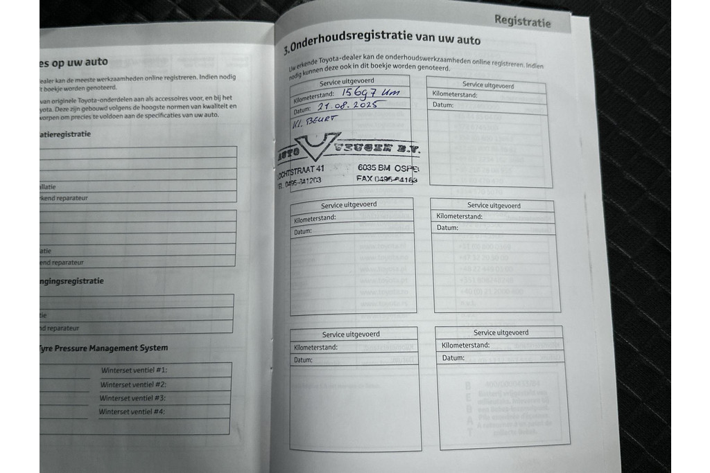 - Onderhoudsboekje (fysiek)