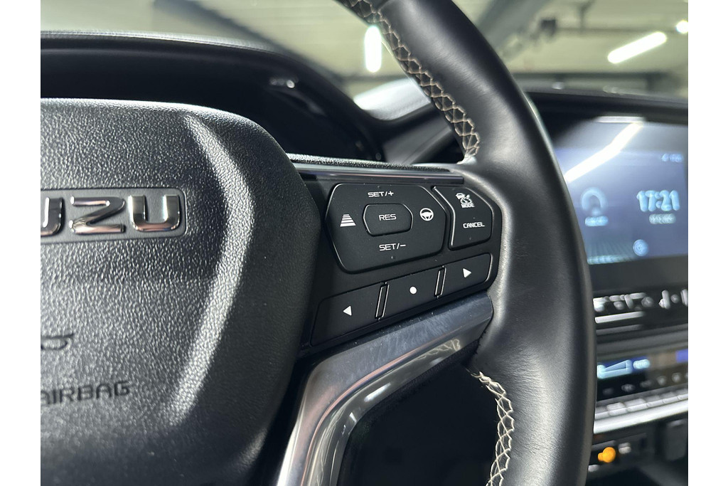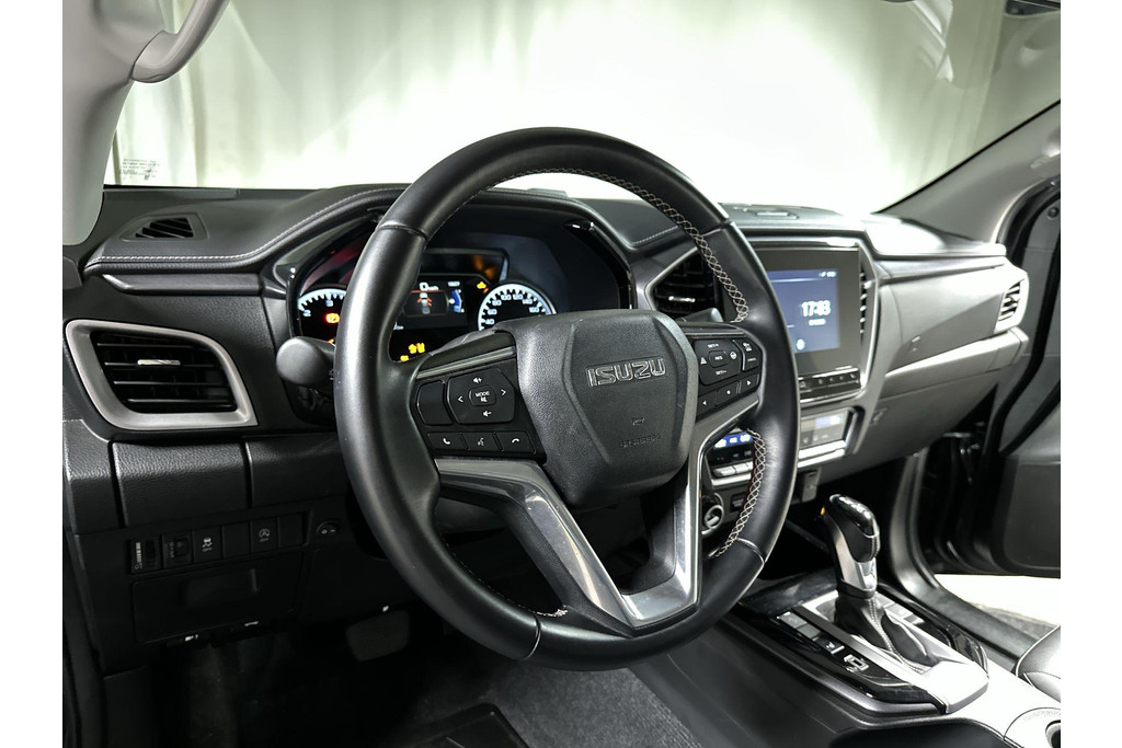 Kom maar, kom maar, kom maar... ho! Prettig hoor, zo'n achteruitrijcamera. Adaptive cruise control houdt de ingestelde snelheid vast en houdt afstand tot het voertuig voor u. De auto is voorzien van een trekhaak en is een uitstekende caravantrekker. Hoe is het met de banden, de accu en andere onderdelen? Connected Services maakt het inzichtelijk, 24/7 via de app. Aan boord van deze Isuzu D-Max is een achteropkomend verkeer waarschuwing voor extra veiligheid. U bent in deze Isuzu ook voorzien van automatische airconditioning, DAB ontvangst, regensensor, keyless entry, lederen stuur en bagage afdekhoes.