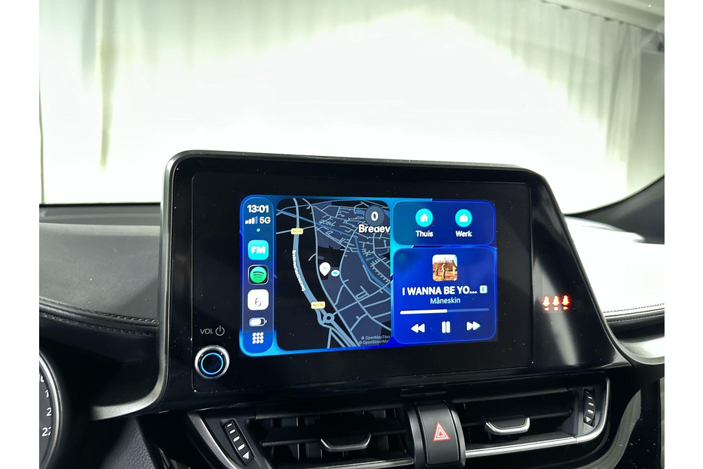 De achteruitrijcamera laat duidelijk zien hoeveel ruimte u nog heeft bij het inparkeren. Adaptive cruise control is een comfortabele en veilige optie. Het systeem reguleert de snelheid en houdt automatisch afstand tot uw voorligger. Vergeten af te sluiten? Bandenspanning onvoldoende? De speciale app geeft u direct een seintje met behulp van Connected Services. Onderweg kunt u veilig genieten van het audiosysteem met DAB-radio en het full map navigatiesysteem. Want in deze Toyota bedient u ze vanaf het stuurwiel of met uw stem. Tot de standaard uitrusting van deze auto hoort ook automatische airconditioning. Wat u ook in deze auto kunt vinden zijn regensensor, keyless entry en automatisch dimmende binnenspiegel.