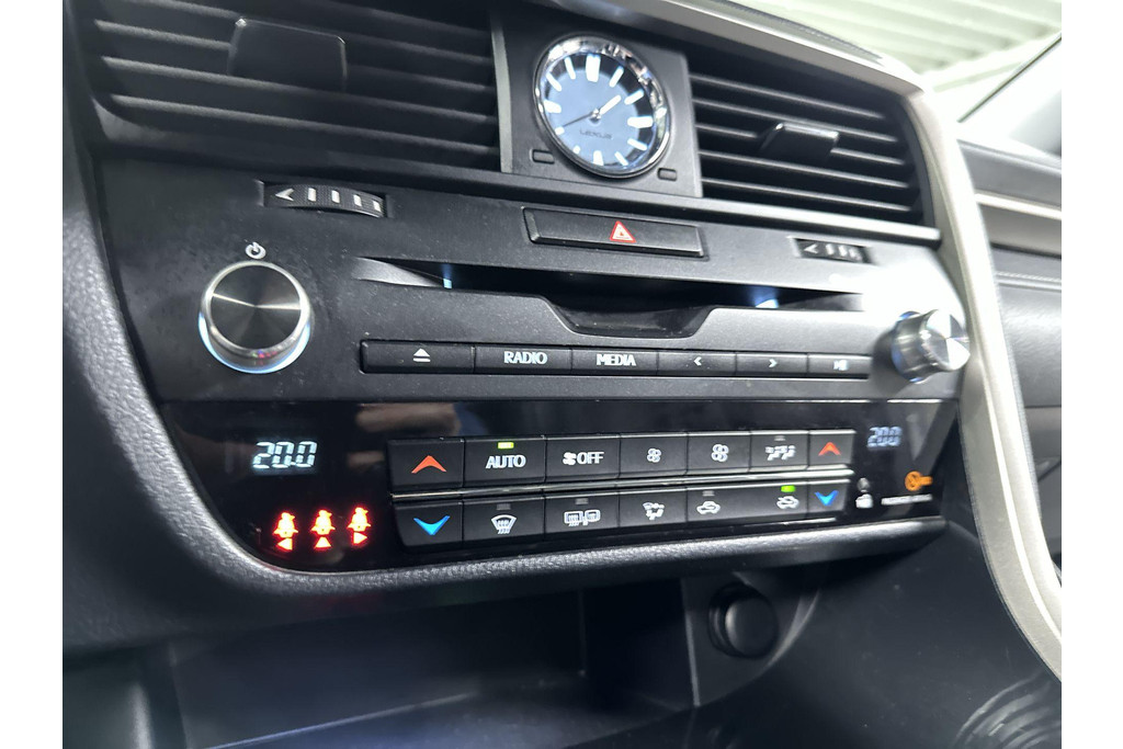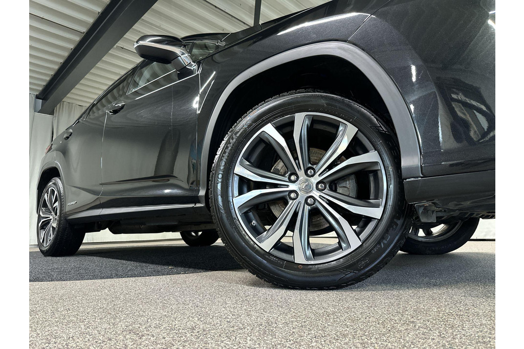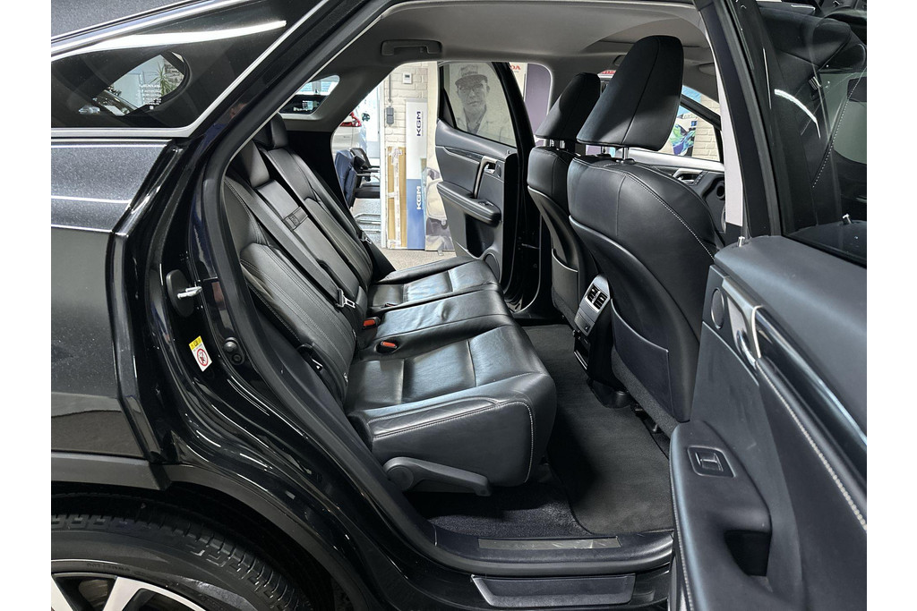Ontspannen en zorgeloos autorijden, dat doet u met deze Lexus RX. Elektrisch rijden: zuinig, goedkoop en schoon. Maar soms net wat beperkt als het gaat om afstand. Daarom heeft deze hybride Lexus RX zowel een verbrandingsmotor als een elektromotor. Als dat geen perfecte combi is! Met zijn lederen bekleding is deze Lexus comfortabel en stijlvol. Doe maar luxe! Neem plaats in de verwarmbare voorstoelen en voel de weldaad in koude dagen. Het interieur baadt in daglicht dankzij het elektrisch bediende glazen panoramadak. De achterklep opent automatisch met een druk op de knop. Handig als u met volle handen staat. Aan een fijn opwarmertje in de kille dagen is gedacht, in de vorm van een verwarmd stuurwiel. Verder is de Lexus uitgerust met: 20 inch lichtmetalen velgen, LED koplampen, extra getint glas, in delen neerklapbare achterbank, LED-achterlichten en verstelbare lendensteunen.
