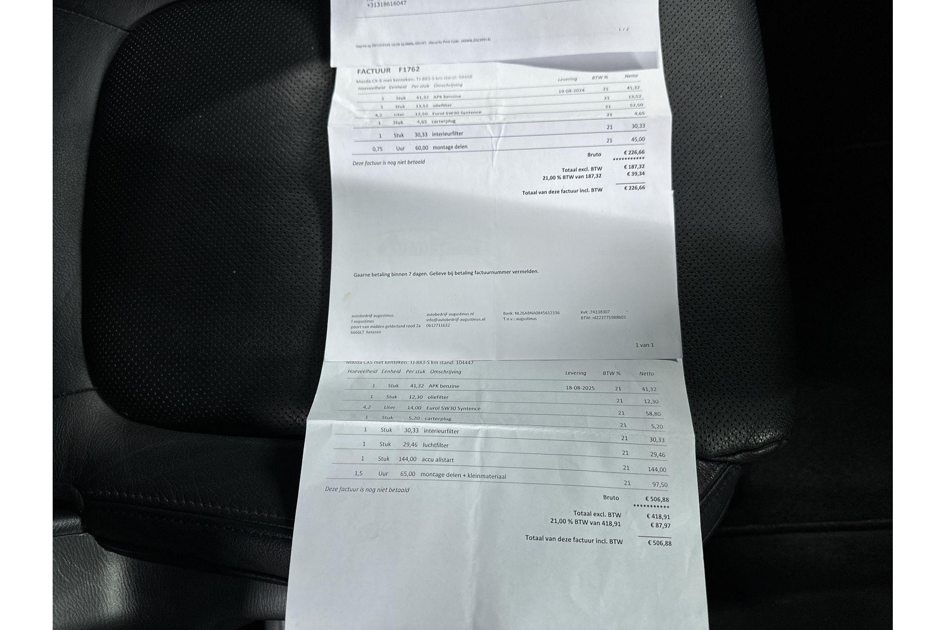 Geldige APK, vloeistoffen controle, wettelijke garantie
