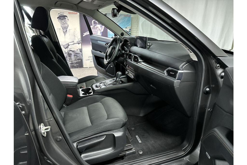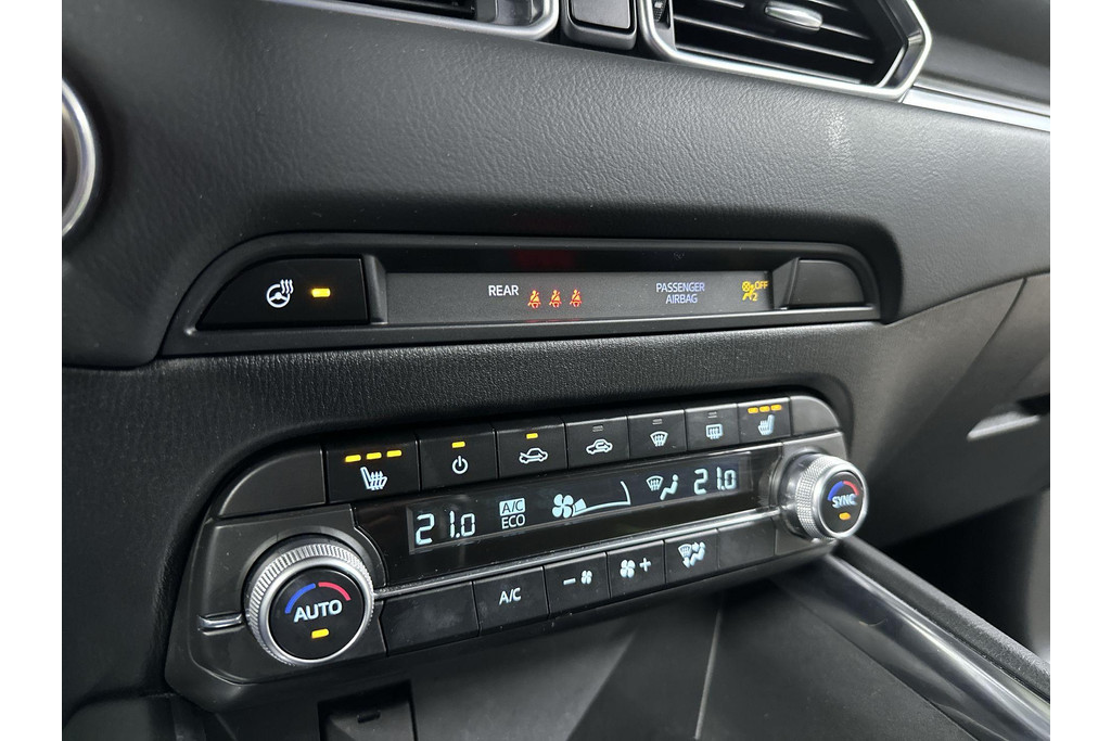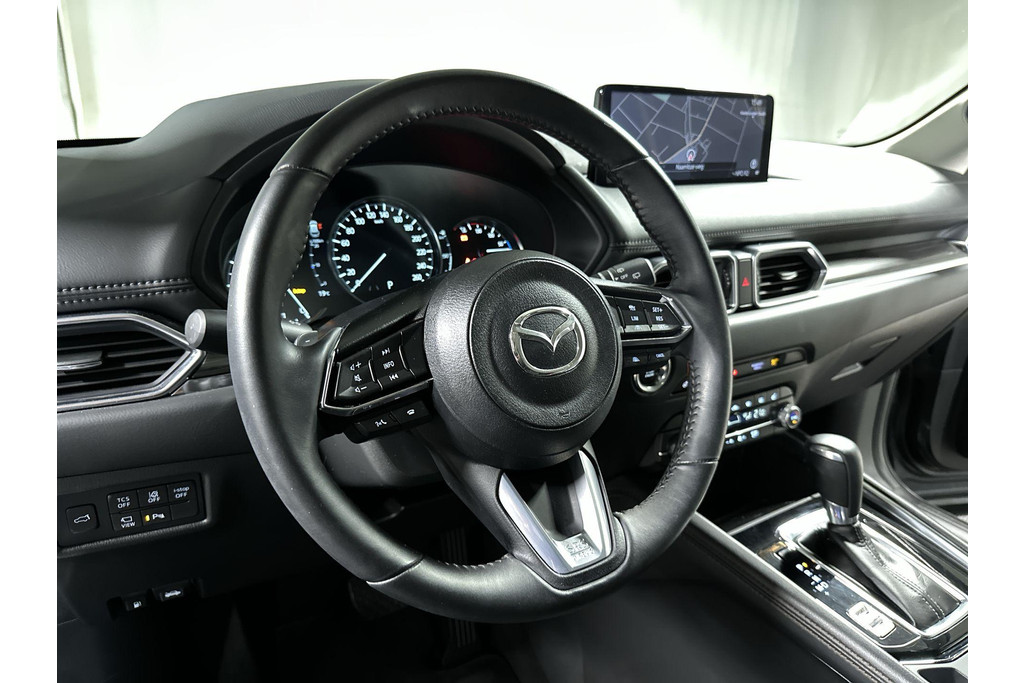Doordachte techniek en intelligente systemen zijn pas waardevol wanneer ze een functie hebben. Meer dan wie ook hebben de Japanse autofabrikanten dit door, en dat merkt u ook aan deze Mazda CX-5. In deze auto vindt u een benzinemotor en een automatische transmissie. Bestuurder en bijrijder krijgen een warm welkom: deze Mazda CX-5 is voorzien van verwarmbare voorstoelen. De elektrische achterklep opent met een druk op de knop, zodat u gemakkelijk toegang heeft tot de bagageruimte. Zo'n verwarmd stuurwiel is een comfortabele extra, zeker in de winter. Ook 19 inch lichtmetalen velgen, LED koplampen, dakspoiler, extra getint glas, in delen neerklapbare achterbank en LED-achterlichten zijn aan boord.