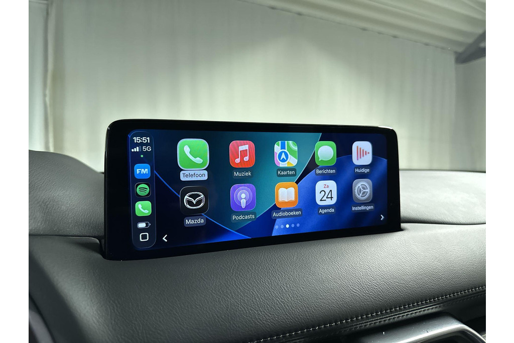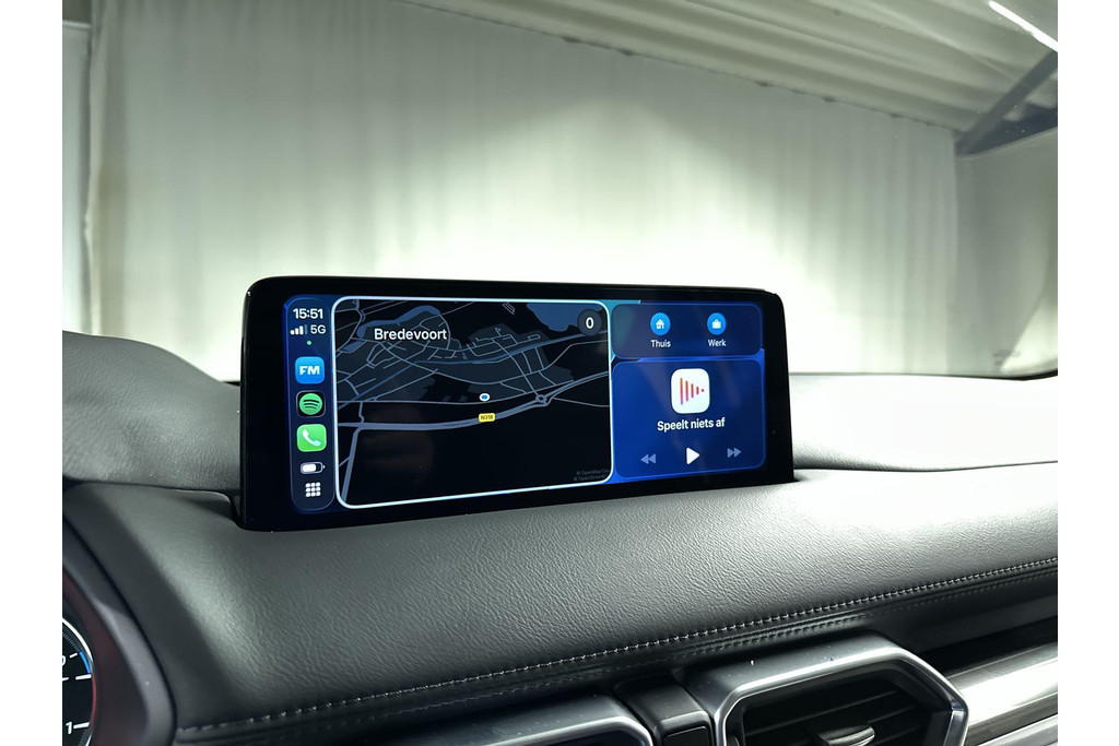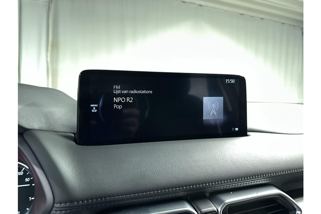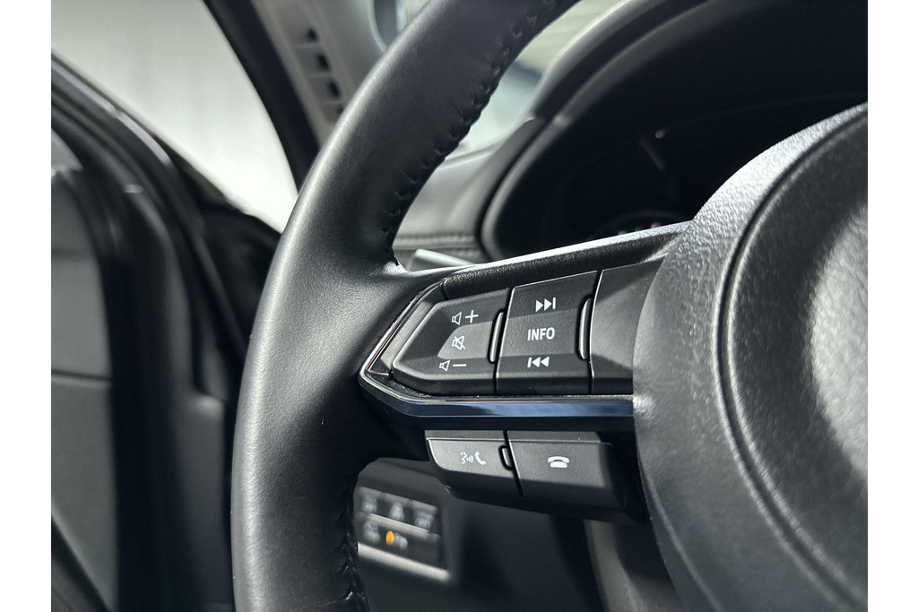 Door het combineren van beelden van vier camera's, biedt de 360 graden camera een naadloos en gedetailleerd beeld van de hele omgeving rondom deze auto. Met adaptive cruise control houdt de auto zelfstandig afstand tot uw voorligger. Een veiligheidsverhogende optie waarmee u comfortabel onderweg bent. Kop aan kont langzaam rijden: dan is afstand houden soms lastig. De file assistent helpt en zorgt automatisch voor veilige ruimte tot de voorligger. Ook als die tot stilstand komt. Connected Services voegt nog meer comfort en veiligheid toe aan deze auto. Elk genre muziek komt tot z'n recht. Het high performance audiosysteem is perfect in te regelen op uw smaak! De Mazda is standaard voorzien van: dashboard met spraakbediening, full map navigatiesysteem, achteropkomend verkeer waarschuwing, electronic climate control, draadloos opladen en DAB ontvangst.