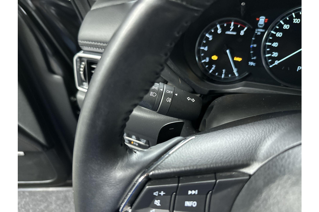 Deze Mazda biedt u niet alleen comfort en rijplezier, maar ook veiligheid. Actieve veiligheidssystemen houden voor u de weg in de gaten en reageren op onvoorziene situaties voordat u dat kunt. Da's veilig! Alle informatie geprojecteerd op de voorruit via head-up display, zodat u uw ogen op de weg kunt houden! U rijdt ook veiliger omdat deze auto voor u de verkeersborden langs de weg kan lezen. De belangrijkste borden worden op uw instrumentarium geprojecteerd, zodat u ze niet kunt missen. Het Lane-keeping systeem zorgt dat u mooi binnen de lijntjes blijft. Ongemerkt buiten de rijstrook komen is er niet meer bij. Verder is deze auto uitgerust met dodehoekdetectie, forward collision warning system, hill hold functie, brake assist, vermoeidheidsherkenning en bandenspanningcontrolesysteem.