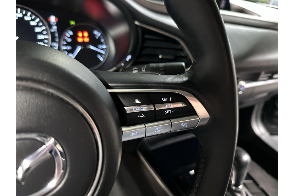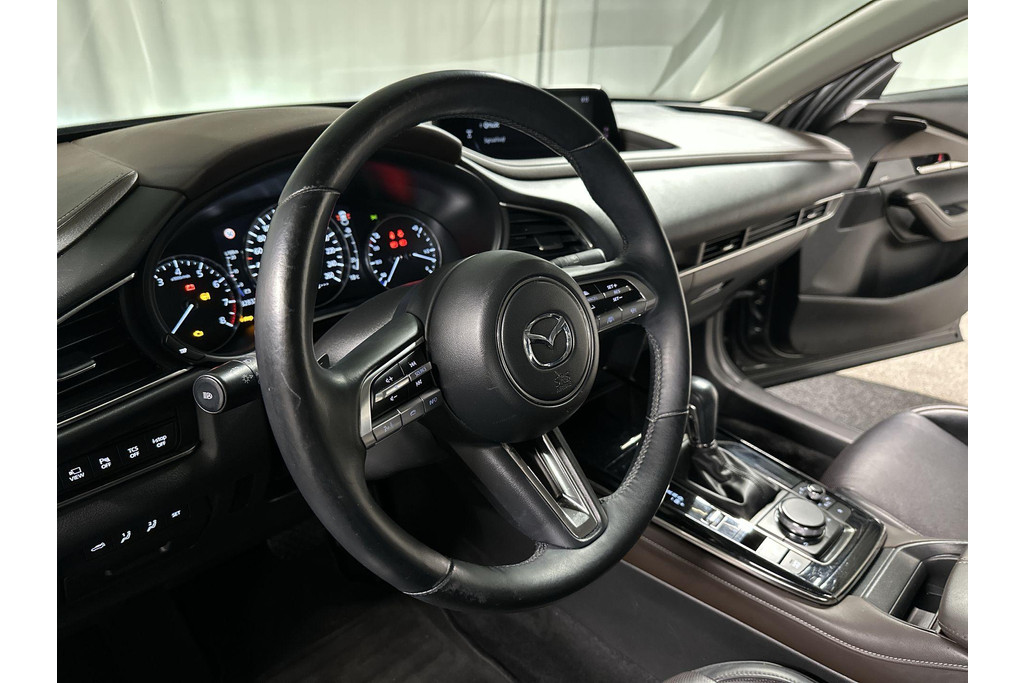 Natuurlijk, dit is een innovatieve auto met zijn hybridetechniek. Maar het is bovendien ook een auto die is gebouwd voor jarenlang rijcomfort. Deze Mazda CX-30 is voorzien van een hybride motor en gebruikt dus zowel brandstof als elektriciteit. Dat betekent zuinige kilometers en toch maximale prestaties. De leren bekleding maakt het interieur helemaal af! De verwarmbare voorstoelen zijn een heerlijke extra optie, waarmee u uzelf en uw bijrijder een groot plezier doet. De elektrisch bedienbare achterklep opent met een druk op de knop. Als het buiten koud wordt, voelt zo'n verwarmd stuurwiel heerlijk aan. Ook 18 inch lichtmetalen velgen, LED koplampen, dakspoiler, elektrisch inklapbare buitenspiegels, extra getint glas en in delen neerklapbare achterbank zijn aan boord.