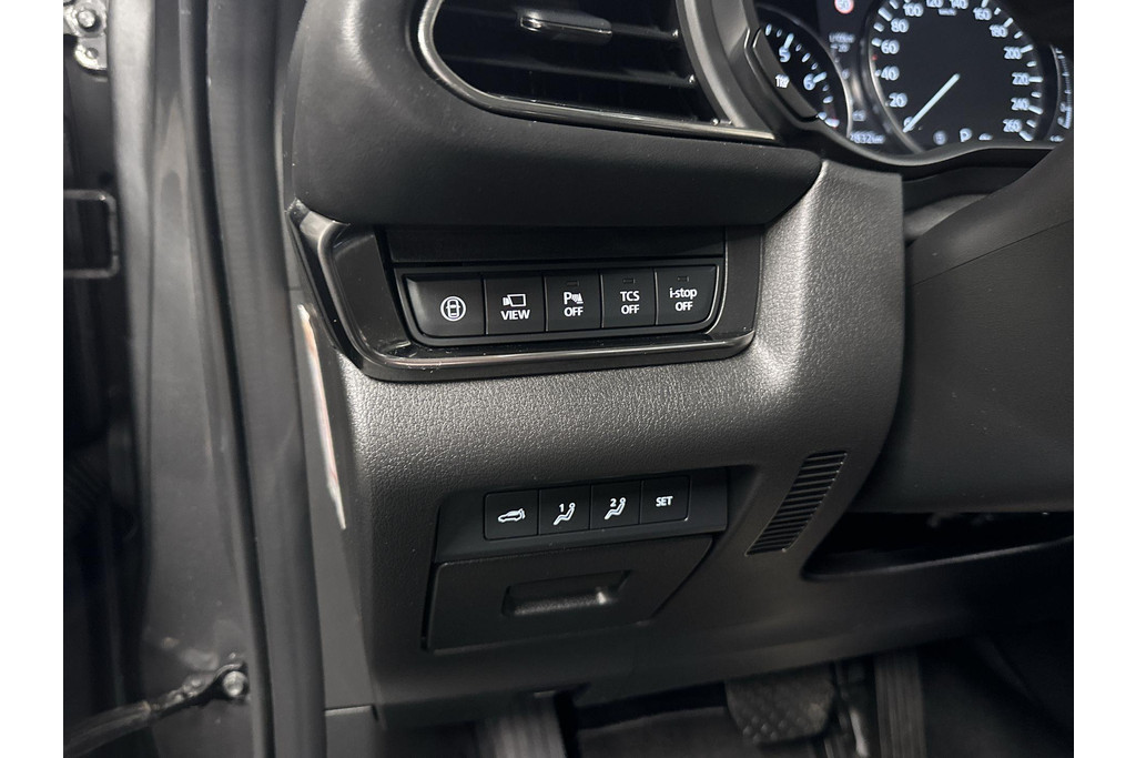Zoals u mag verwachten van deze Mazda CX-30 is hij uitgerust met een reeks aan actieve veiligheidssystemen. Tijdens de rit hebt u altijd een bijrijder, want de verkeersbord-detectie leest de borden langs de weg en projecteert ze voor u op het instrumentarium. Mooi binnen de lijnen van de rijstrook blijven? Het Lane-keeping systeem helpt altijd een handje. De sensor van het forward collision warning-systeem registreert permanent de afstand tot voorliggers en grijpt in als een botsing dreigt. Verder is deze auto uitgerust met head-up display, dodehoekdetectie, hill hold functie, brake assist, vermoeidheidsherkenning en bandenspanningcontrolesysteem.