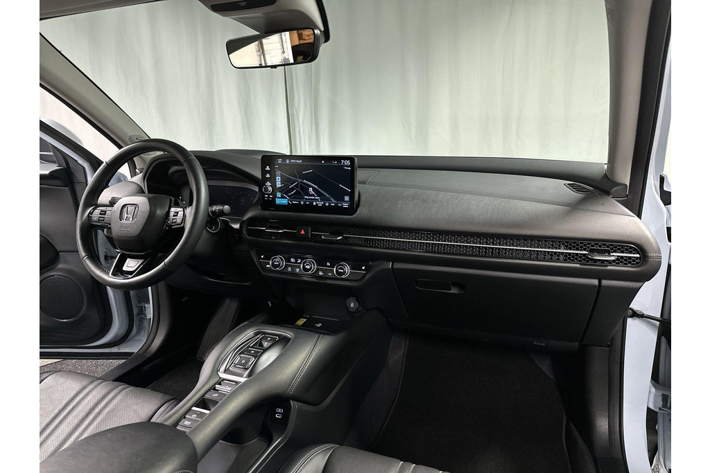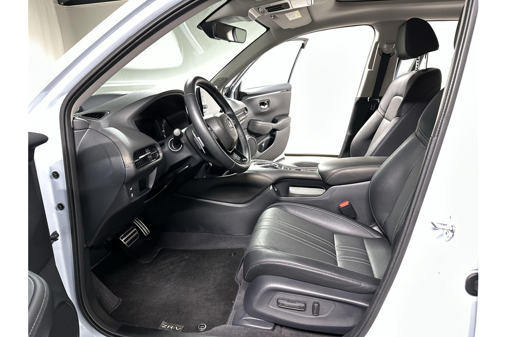 Innovatief design, doordachte techniek en een hoog kwaliteitsniveau zijn typische kenmerken van de Japanse automerken. Dat is te merken aan deze Honda ZR-V, een auto uit 2025 die 6690 kilometer heeft gelopen. Deze hybride auto beschikt over een verbrandingsmotor én een elektromotor. Daardoor rijdt de auto zeer comfortabel en is tegelijk zuinig in het verbruik. Lederen bekleding is in deze rijk uitgeruste auto ook aanwezig. U past de stoelen moeiteloos aan, ze zijn elektrisch in te stellen en hebben bovendien een geheugen. Zelfs als het buiten ijzig koud is, kunnen zowel de bestuurder als de passagiers op de achterbank snel opwarmen, dankzij de verwarmbare stuurwiel en de achterbankverwarming. De bagageruimte is toegankelijk via een comfortverhogende elektrische achterklep. Een heerlijke hoeveelheid daglicht zorgt voor een riant en ruimtelijk effect door het glazen panoramadak. De uitmonstering van deze auto wordt gecompleteerd door onder meer 18 inch lichtmetalen velgen, LED koplampen, dakspoiler, extra getint glas en LED-achterlichten.