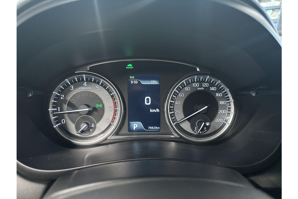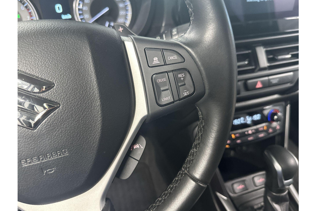 Deze Suzuki is voorzien van verschillende intelligente veiligheidsvoorzieningen. Ze kijken tijdens het rijden als het ware met u mee, ze signaleren potentieel gevaarlijke situaties en in een aantal gevallen kunnen ze ook ingrijpen. Dat de auto steeds meer taken van de bestuurder overneemt, merkt u bijvoorbeeld aan het systeem voor verkeersbord-detectie in deze Suzuki. Mooi binnen de lijnen van de rijstrook blijven? Het Lane-keeping systeem helpt altijd een handje. De forward collision warning geeft een botswaarschuwing als een aanrijding dreigt met een voorligger. De veiligheid van deze auto wordt verder verhoogd door dodehoekdetectie, hill hold functie, brake assist, vermoeidheidsherkenning en bandenspanningcontrolesysteem.